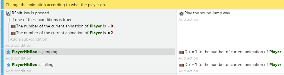 Puede agregar el editor de eventos a cualquier número de bloques de eventos. Cada evento puede tener diferentes condiciones y acciones. Una vez que agrega un evento, puede usar las condiciones y acciones para crear la lógica del juego. Conozca más sobre los eventos, en esta página: .