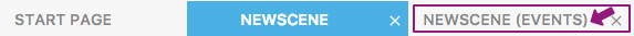 Cuando abre una escena o cualquier evento externo, el editor de eventos de escena se presenta en la pestaña que se encuentra sobre la ventana de apertura.