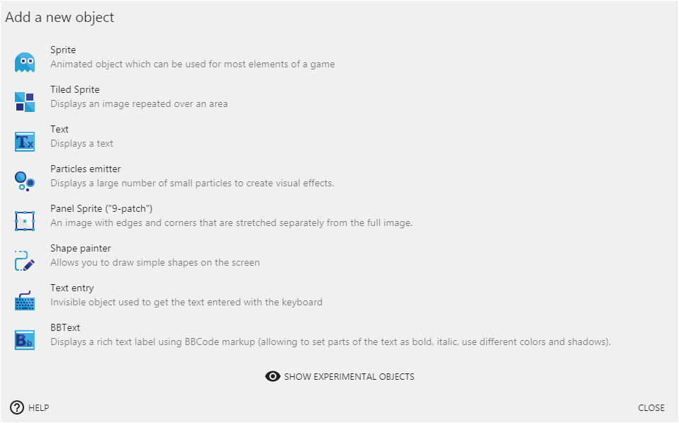 Partículas de tipo (Particles kind) Para usar el Emisor de partículas, cree un nuevo objeto de la lista Objetos. Se abrirá un panel: