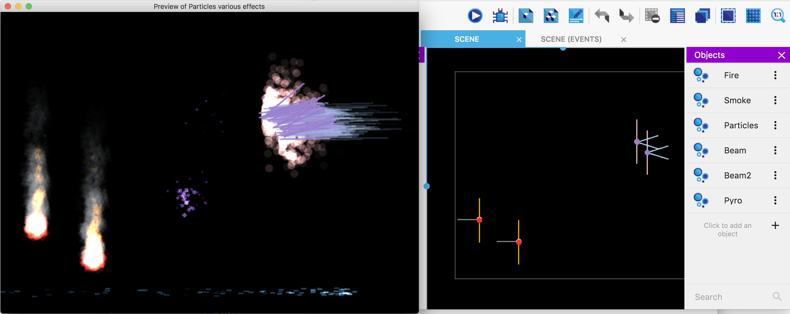 Los emisores de partículas se utilizan para mostrar un gran número de partículas pequeñas. Simulan efectos en un juego. Algunos ejemplos de emisores de partículas son el fuego, las explosiones, el humo y el polvo.