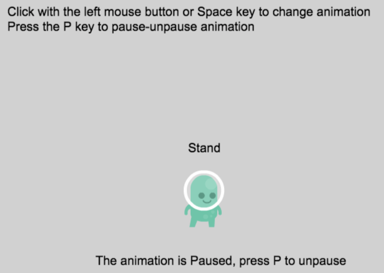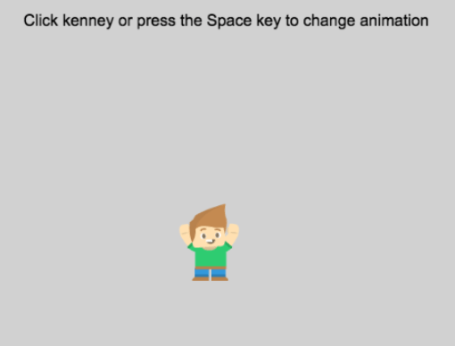 El uso de eventos para cambiar la animación se puede hacer creando múltiples animaciones, como se explicó anteriormente, cada una con sus propias imágenes de entrada personal. Si configura el reloj entre 0 y 1, se asegurará de que permanezca activo cuando use eventos.