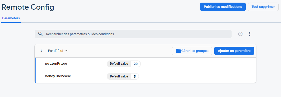 Et c'est bon! Tu as terminé et peux distribuer ton jeu. Si tu dois modifier une des variables, il te suffit de le faire depuis le tableau de bord Firebase.
