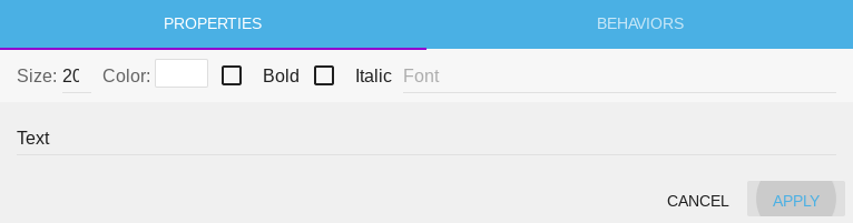 Le style du texte affiché peut aussi être modifié. Nous pouvons choisir entre gras (Bold), italique (Italic) ou même choisir une police personnalisé dans le champ Font.