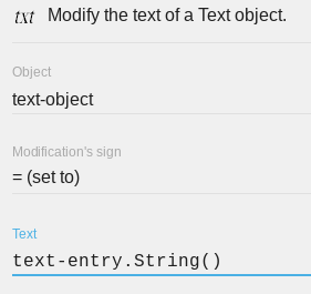 Renommez ensuite l'objet Text entry comme bon vous semble, puis ajoutez l'objet Text entry dans la scène.