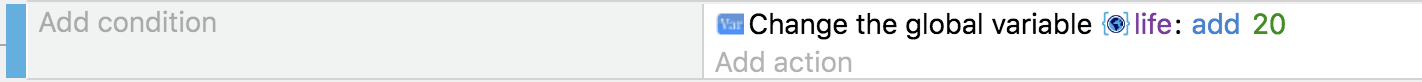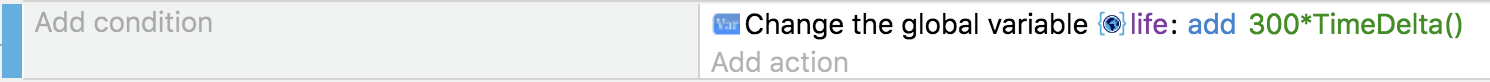 Le premier événement consiste à ajouter 20 à la variable à chaque fois que le jeu est rafraîchi (c'est-à-dire autant que possible, jusqu'à 60 fois par seconde). Il n'est pas correct d'utiliser un tel événement car la vitesse d'augmentation de la variable ne sera pas la même d'un ordinateur à l'autre : nous ne pouvons pas prédire la valeur de la variable après 10 secondes par exemple - car elle dépend du nombre d'images du jeu peintes.
