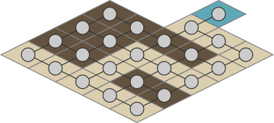 The link action doesn't allow to link 2 instances of the same objects. So, 2 objects must be used to build the grid and they will be connected alternatively. Each cell contains one instance of these 2 objects. One will likely be shown to the screen and the other one hidden and only used for calculations on the graph.