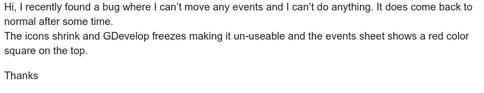 You can also report it on GDevelop's Github repo as an issue, but the forum is more preferred. Only do so if you are sure you have all the info needed.