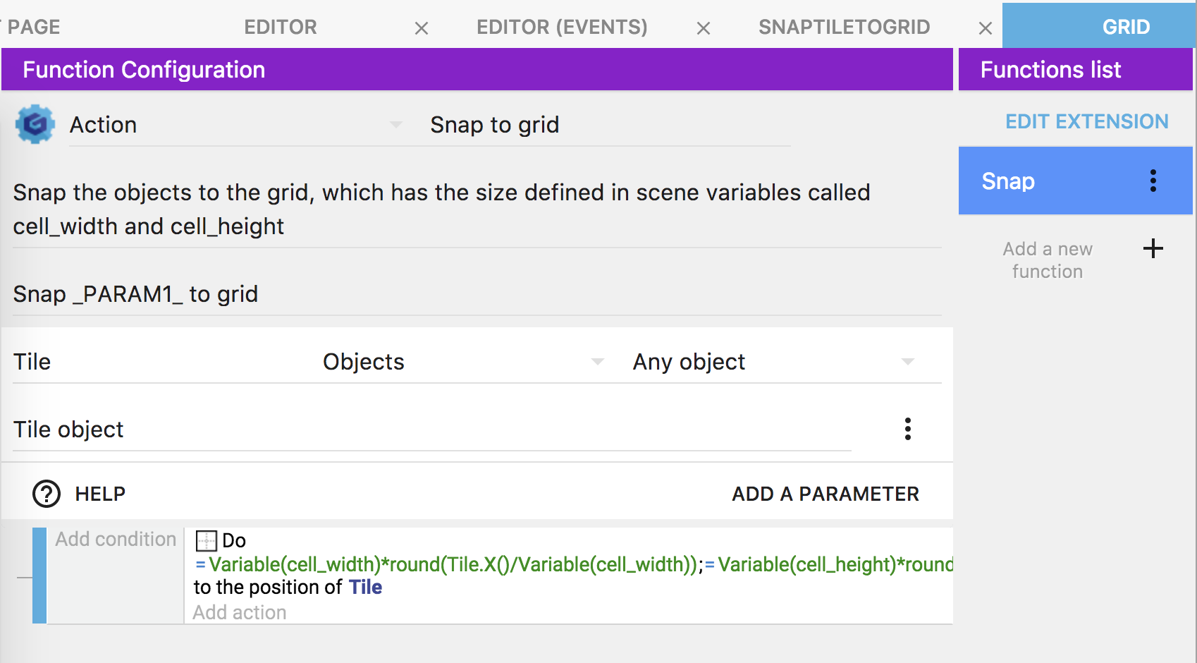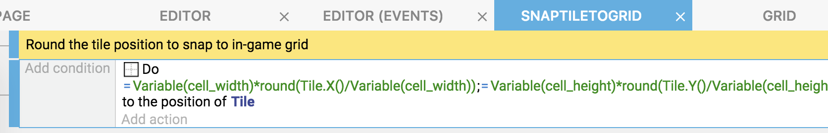 The advantage is that you can now use this new action to snap any object to the grid. You could even extract it and reuse it in another game!