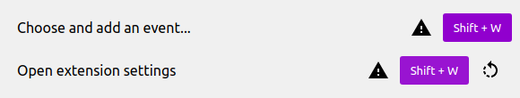 You can't use a key combination that is already utilised by another command. A exclamation mark will be displayed against the conflicting combinations.