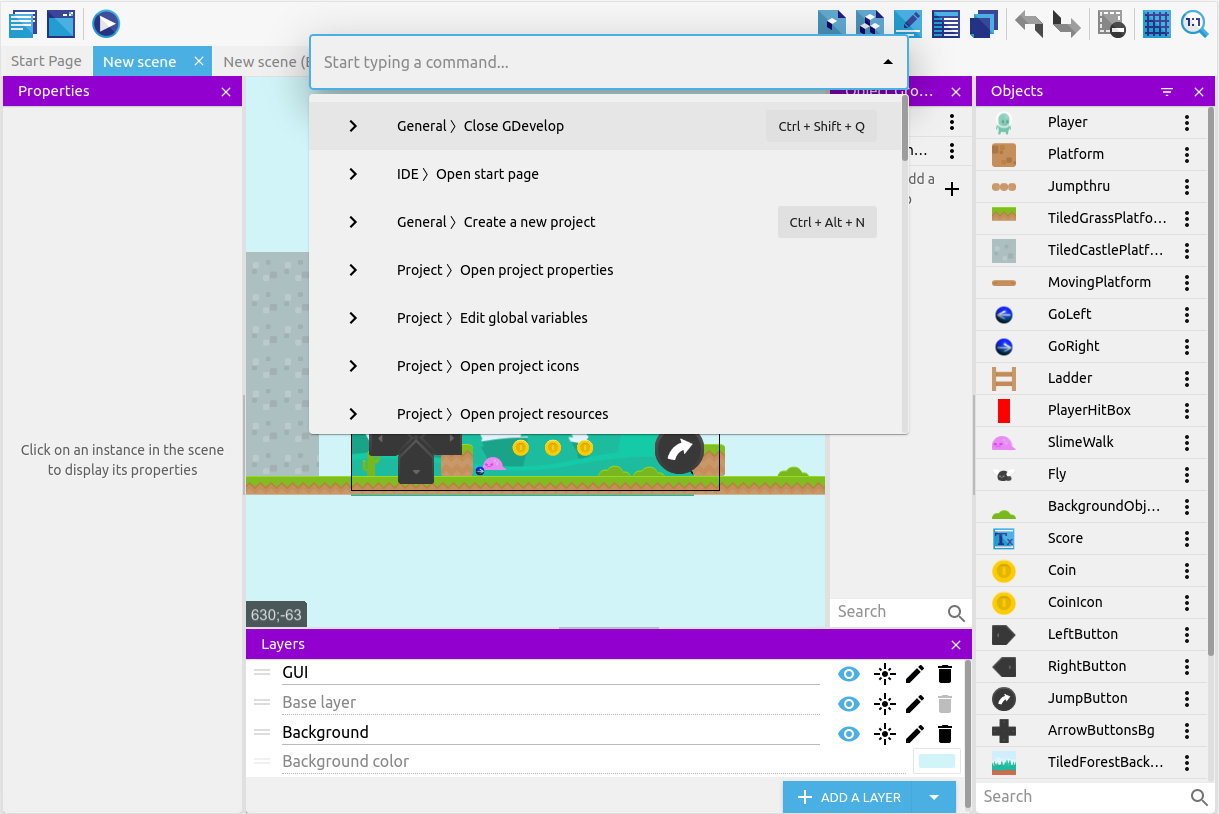 GDevelop provides keyboard shortcuts that allow you to quickly get to places. You can customise them to fit your preferences.