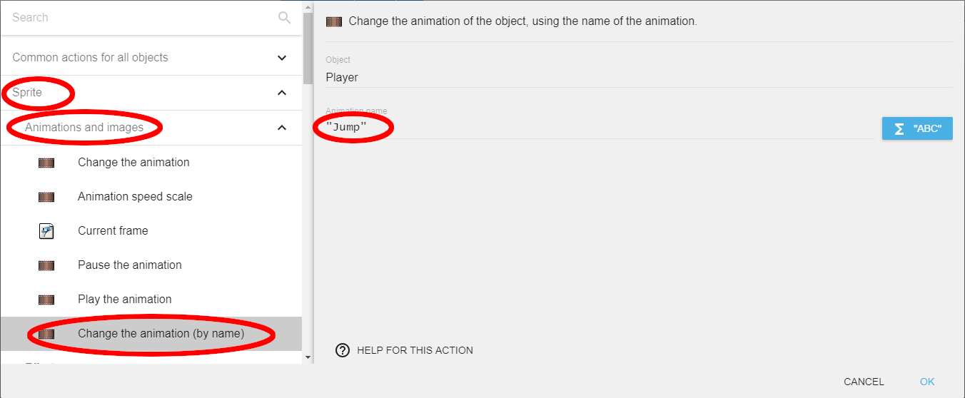 You can also change animations using the number associated with that animation using the action "Change the animation", where you can change the number of the animation being played with the modification symbol.