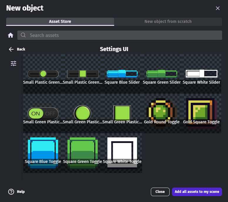 Sliders and toggle switches can be useful to make a settings panel. As the settings panel and the game may be in different scene, the value can be stored in a global variable to be able use it in the game scene.