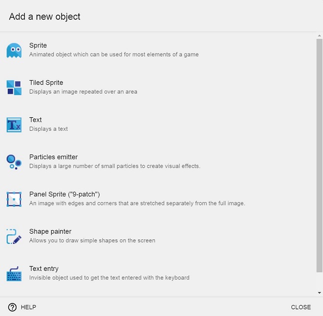 You will encounter the term “assets” a lot as you work with GDevelop. In computer game development language, assets are the files that make up the game content – things like characters, platforms, audio files, etc.