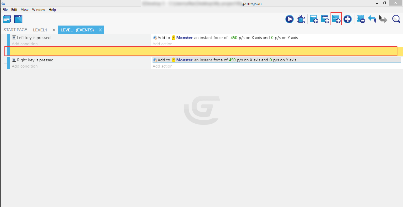If you completed the right movement, both events with their conditions and actions should now be in place, so the Monster can move in either direction - left or right.