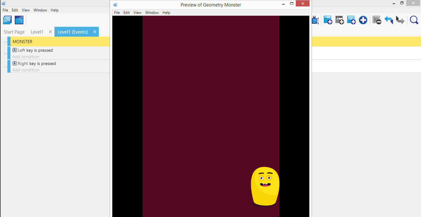 It worked - the preview of Gemoetry Monster game is launched, and you can already control the main character!