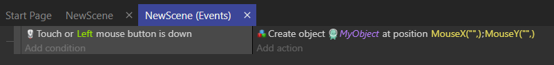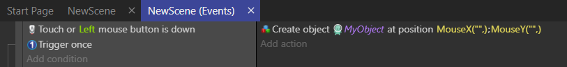 - What is expected to happen: When the left mouse button is pressed, an object is created called MyObject.