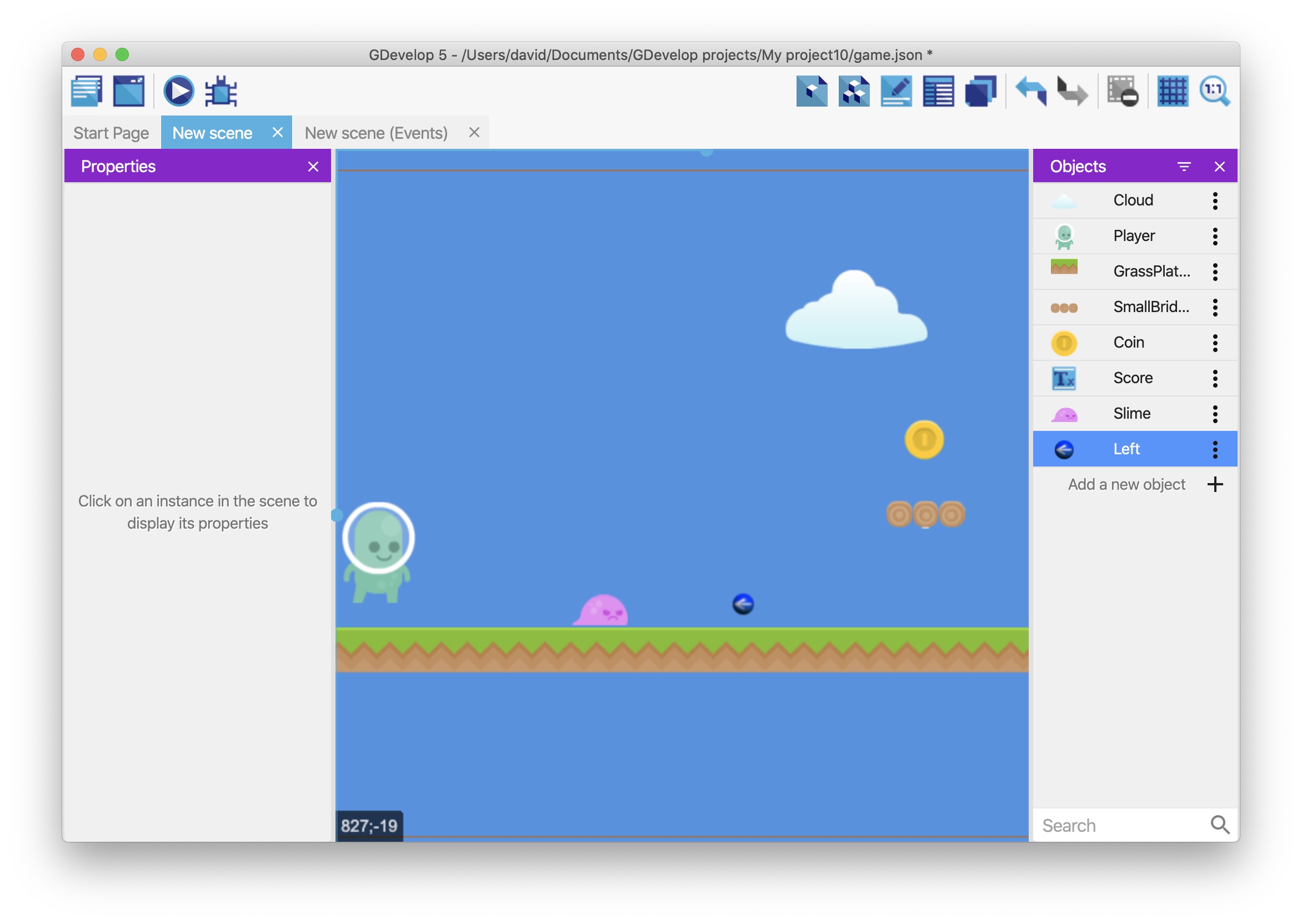 This step focuses on creating the "Left" object. When the enemy collides with this object, they'll change direction from left to right. (The step that follows focuses on the "Right" object.)