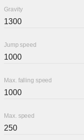 「速度と重力」オプションで対応する値を変更することにより、キャラクターが加速、減速、移動、落下、ジャンプする速度を変更できます。これらのオプションは一目瞭然だと思うので、あまり説明する必要はないと思います。 キャラクターオブジェクトを遅くしたい場合、これらの値を減します。キャラクターオブジェクトをスピードアップしたい場合、これらの値を増やします。