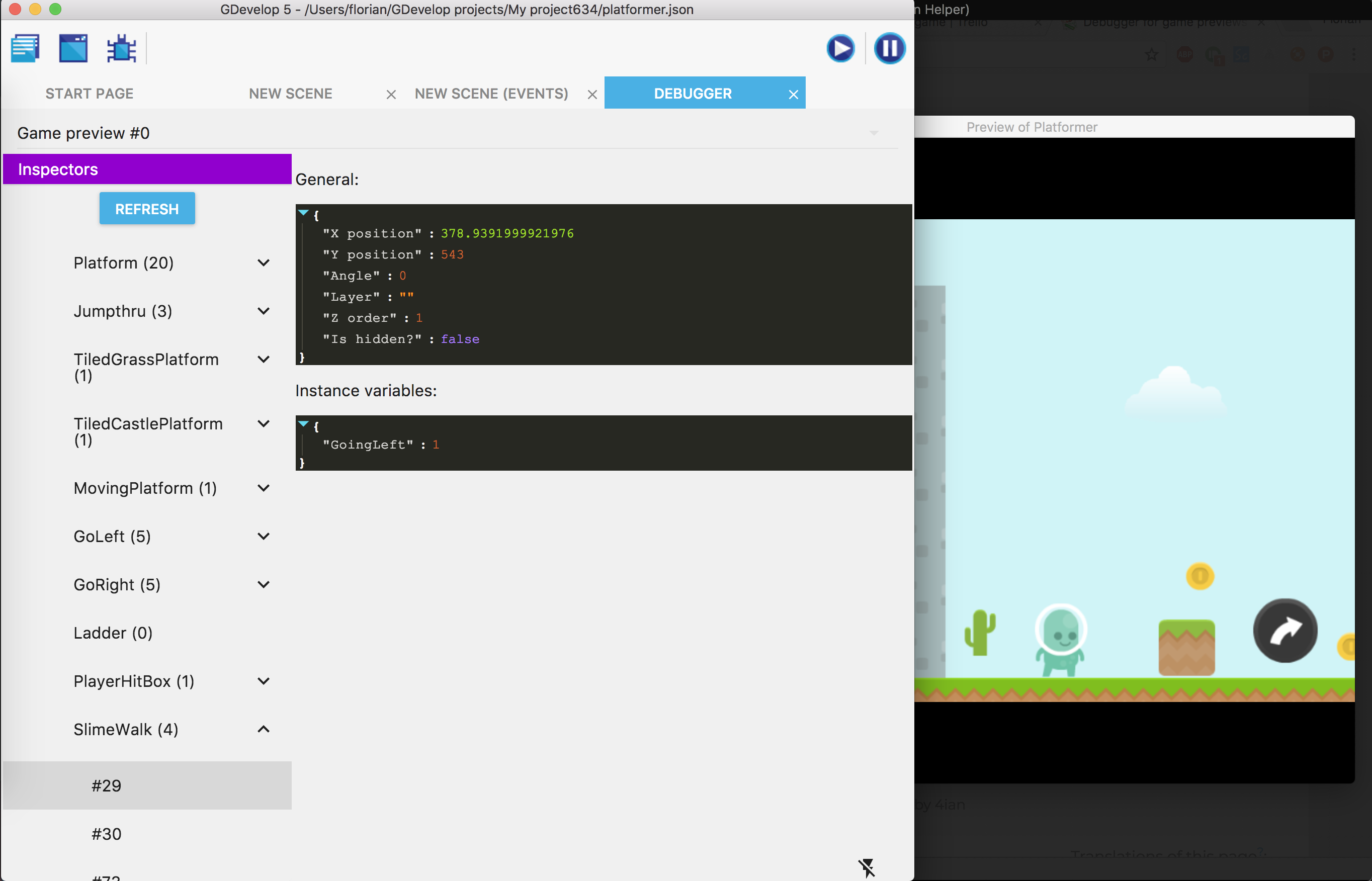 デバッガは、あなたがゲームの内容を検査できるようにするツールです。特に、グローバル変数、シーン変数、オブジェクトのインスタンスの変数を検査するのに有効です。これは強力なツールです。