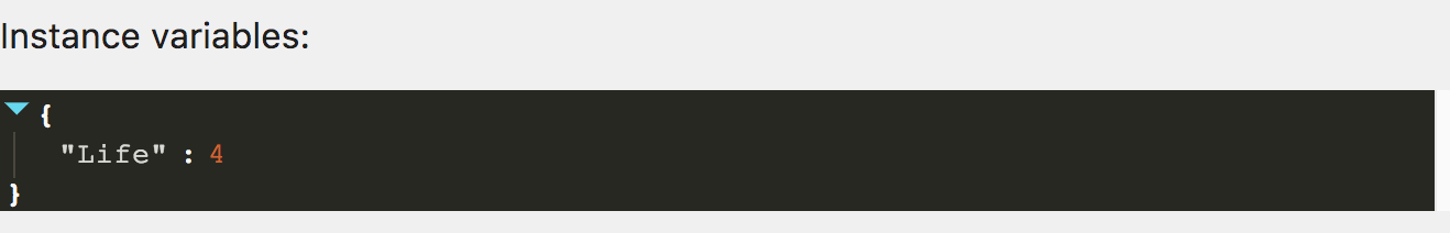 変数は、変数名と値(数値またはテキスト)がリスト表示されます。「Life」変数を持つオブジェクトのインスタンスの例を次に示します。