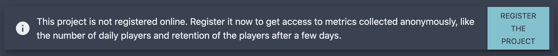 ゲームのメトリクス情報にアクセスするための最初の一歩は、ゲームをオンライン登録することです。GDevelop アカウントを作成済みであることを確認してください(無料です)。ゲームをエクスポートすると、そのゲームを GDevelop オンラインサービスに登録するか訊かれます。