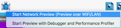 再生ボタンを右クリックすると、他のオプションを選ぶこともできます。右隣のデバッグボタンからはネットワークプレビューも開けます。