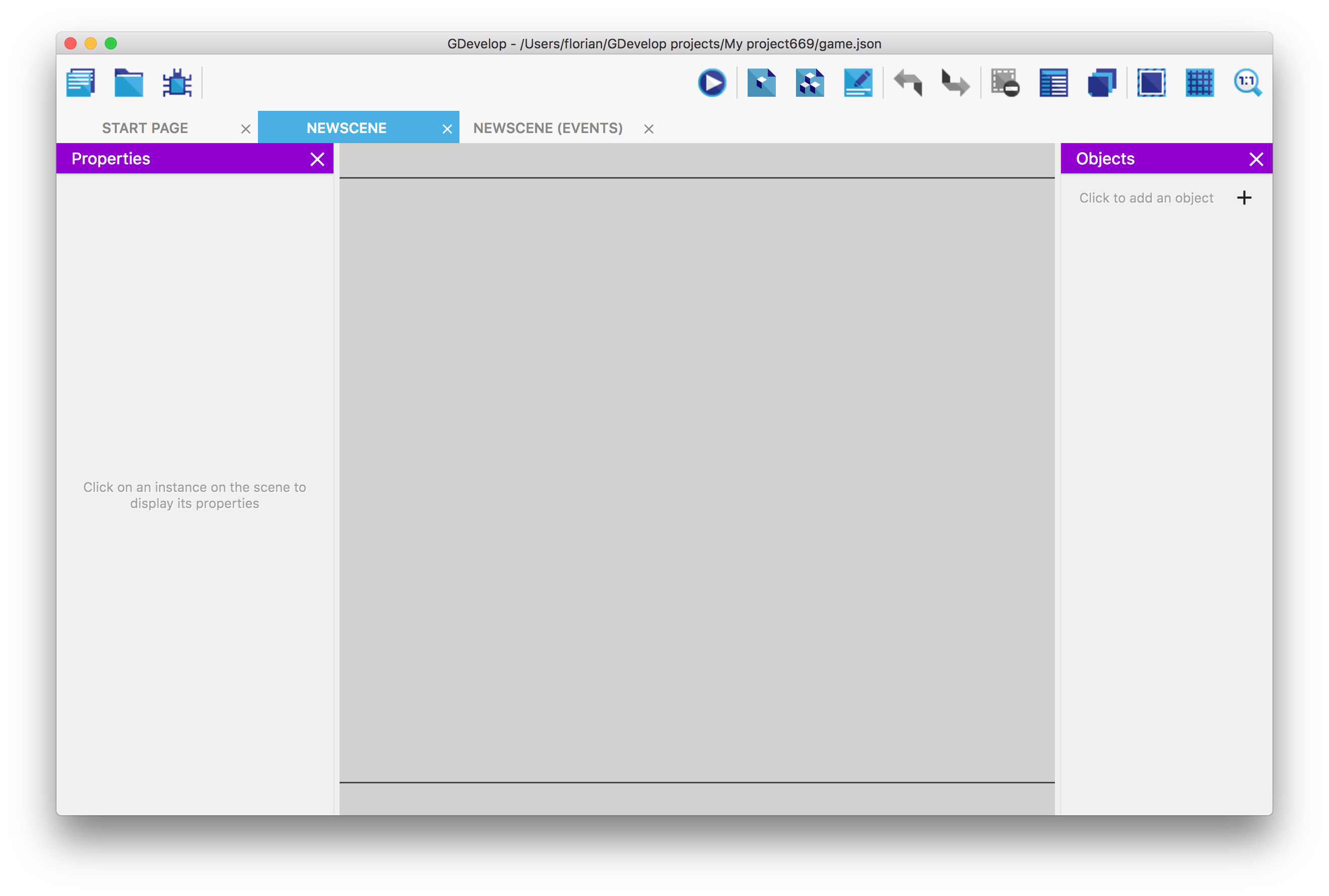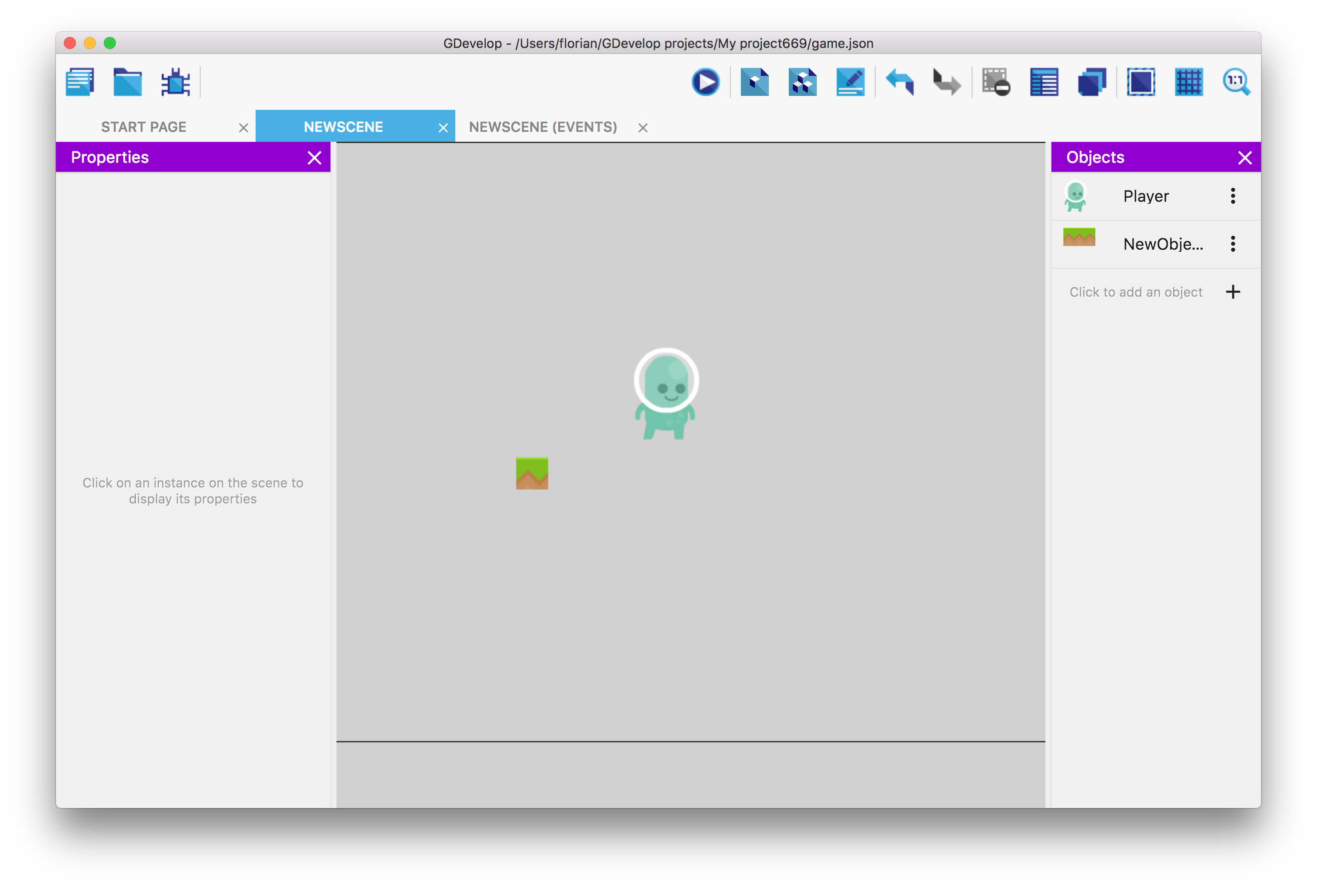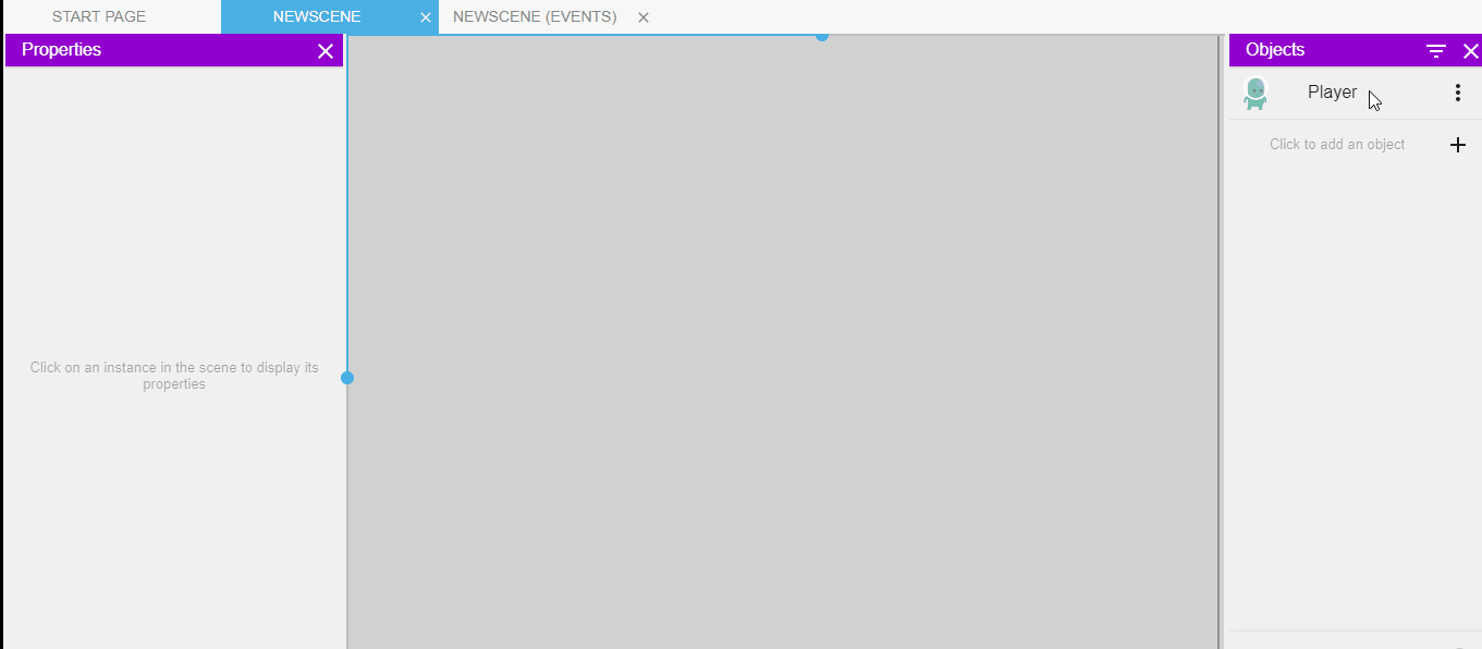 シーンには、画面に表示されるオブジェクトが含まれます。これらのオブジェクトをシーンに配置してレベルを作成できます(これらのオブジェクトは「インスタンス」と呼ばれます)。シーンには、シーンをアニメーション化するために実行されるイベントも含まれます。